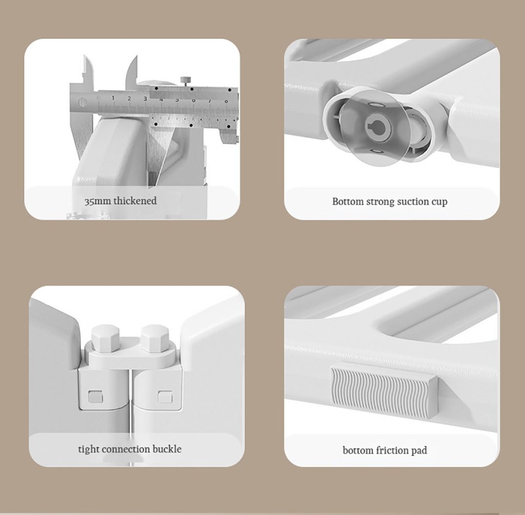 - בתחתיות הפנלים יש 2 חיבורים וואקום לריצפה ליציבות ולמניעת נפילה של הגדר כמו תמיד, אצלנו יש גם רפידה נוספת המיועדת למניעת שריטות בריצפה שלכם.